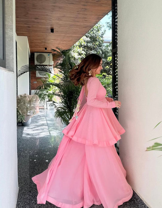 Aelvisha Baby Pink Faux Blooming Designer Sharara Suit