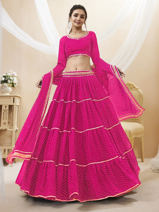Barbie Pink Georgette Laheriya Print Lehengha Choli
