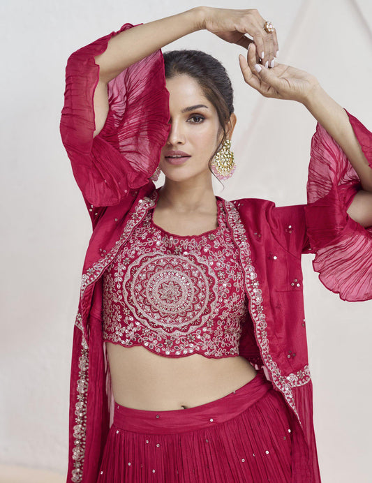 Blazing Beauty Chinon Fabric Fully Stiched Jacket Bottom Set