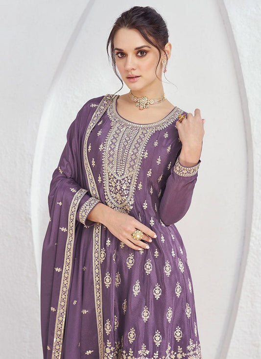 Lavender Bliss Stunning Embroidered Chinon Suit Set