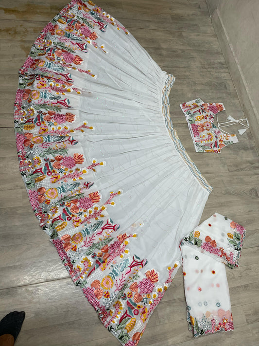 Noor Sky Blue Chikankari Georgette Lehenga Set