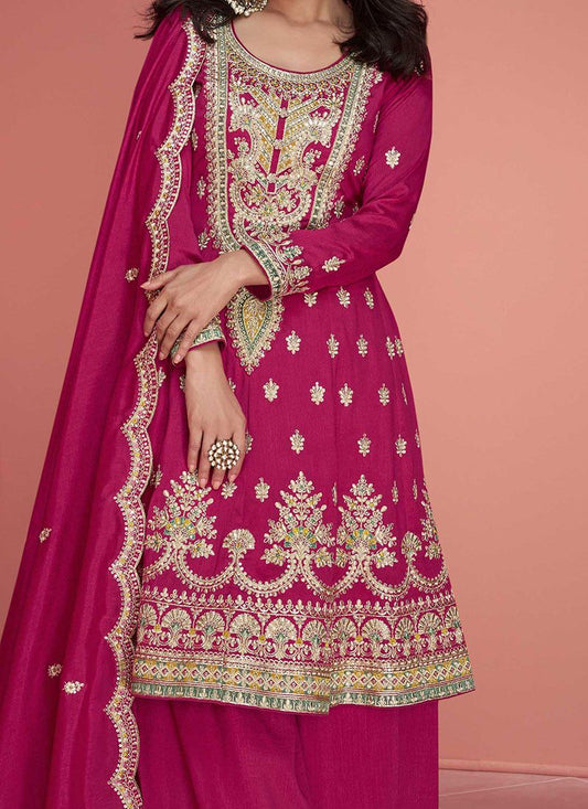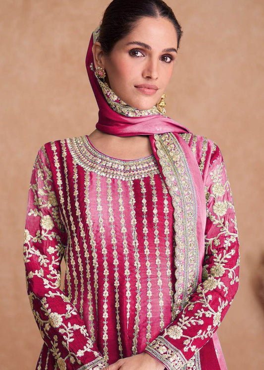 Pink Vichitra Silk Stunning Embroidered Suit Set