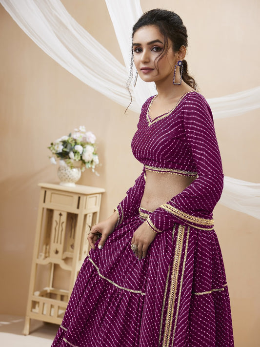 Purple Eleganca Georgette Laheriya Print Lehengha Choli