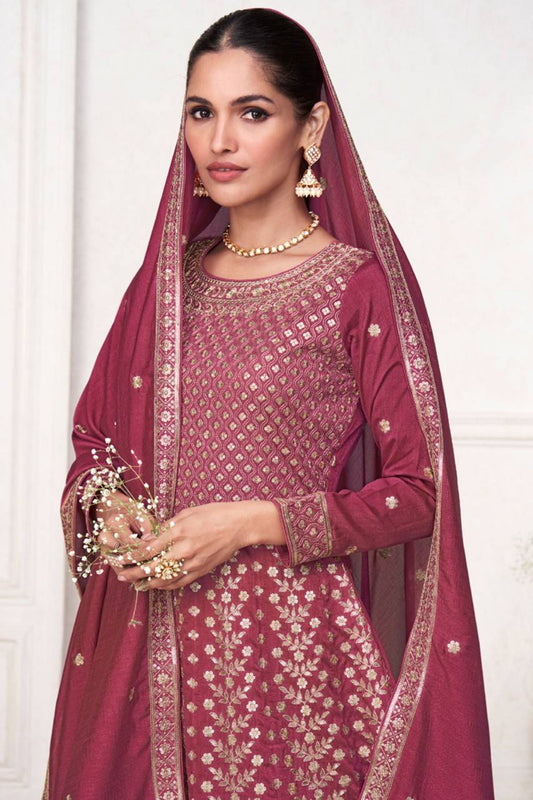 Rani Gajri Silk Embroidered Suit Set with Dupatta