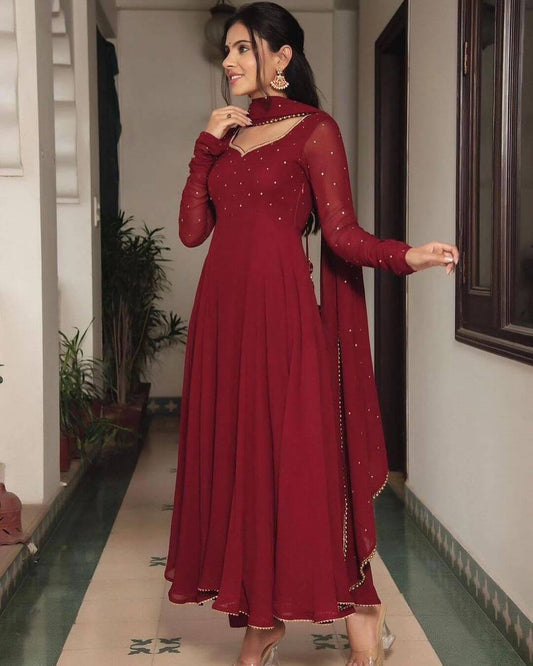 Pure Soft Georgette Zigzag Fancy Lace Work Anarkali
