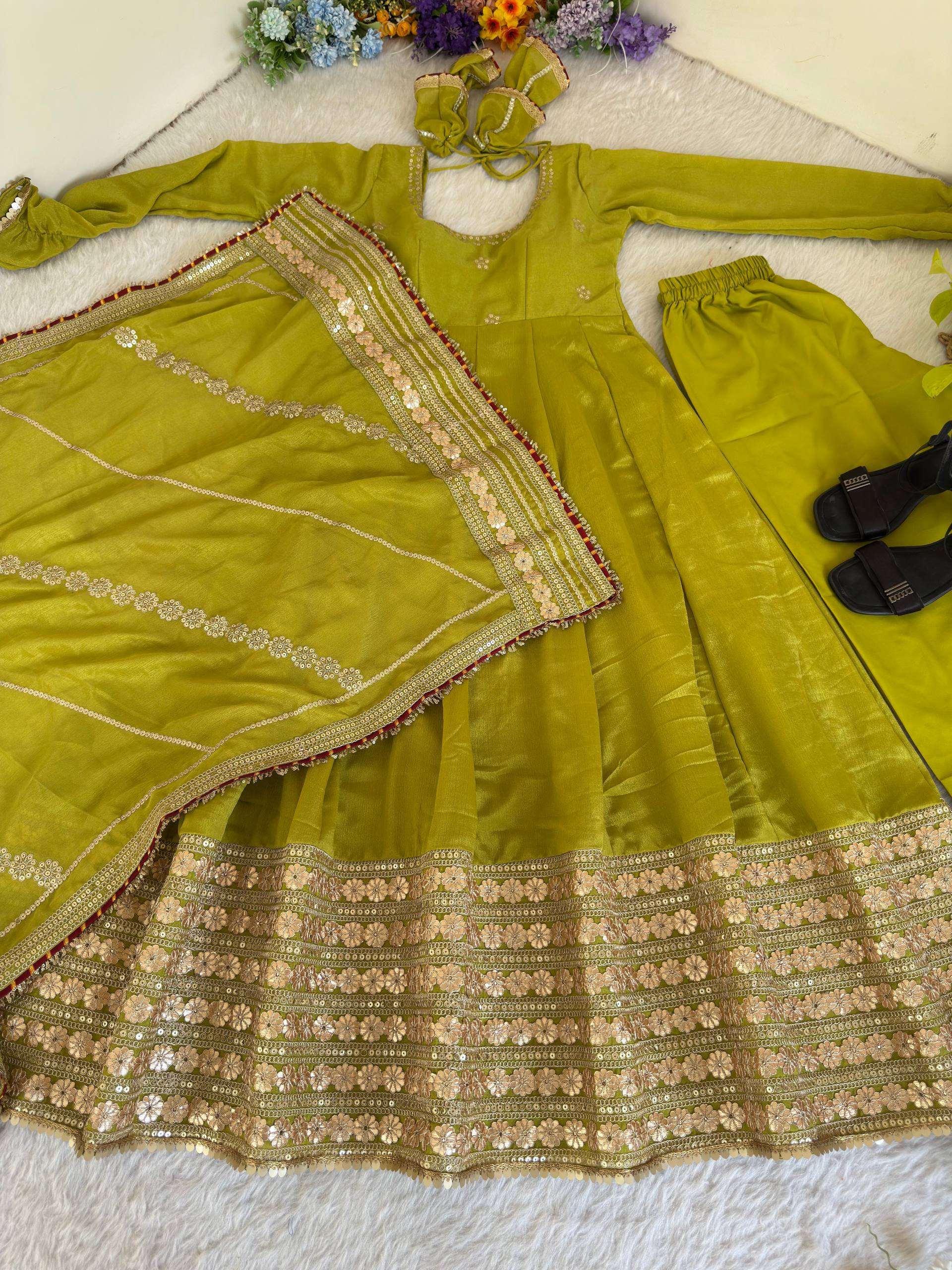 Zarisha Luxe Embroidered Chinon Anarkali Set ( 6 Colours )